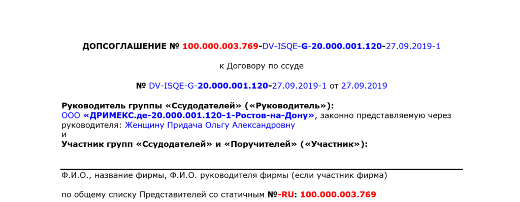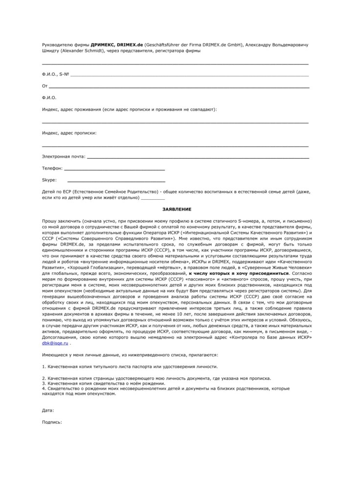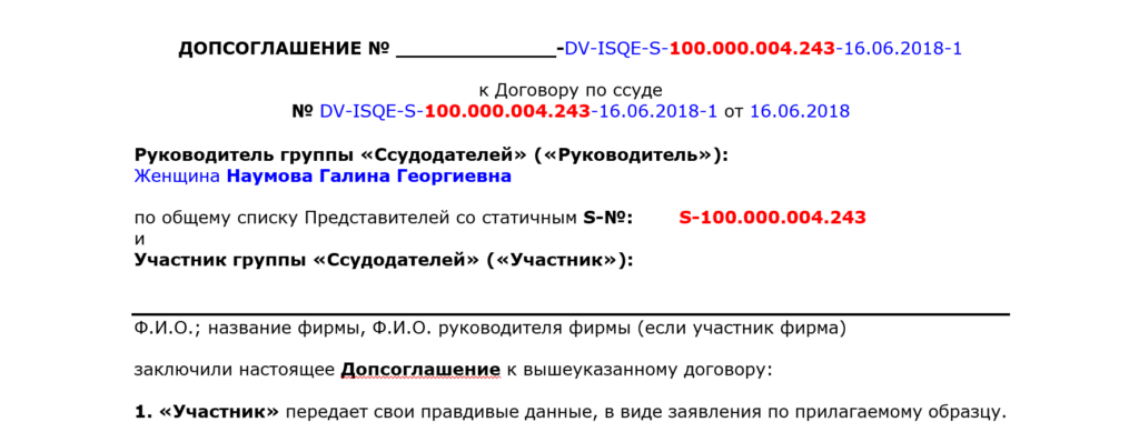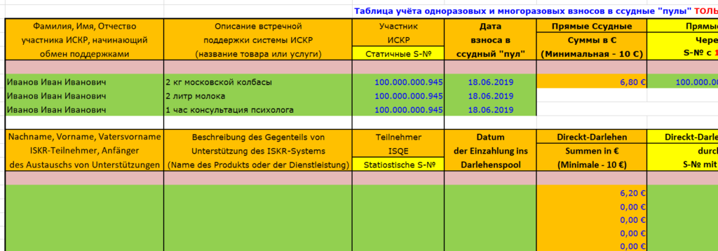 Для скачивания в свой комьютер документа под названием:Заявление на вступление в ИСКРнажмите на ее название или на картинку справа Для скачивания в свой комьютер документа под названием:Перечень мест по «причастности» ИСКРнажмите на ее название или на картинку справа Для скачивания в свой комьютер документа под названием:Подстраховочная таблица для ФИЗИЧЕСКИХ лицнажмите на ее название или на картинку справа Для скачивания в свой комьютер документа под названием:Образец обозначения папочек документов на новых участников ИСКРнажмите на ее название или на картинку справа Для скачивания в свой комьютер документа под названием:Подстраховочная таблица для привлеченных ЮРИДИЧЕСКИХ лицнажмите на ее название или на картинку справа Для скачивания в свой комьютер документа под названием:Дополнительная таблица для уже зарегистрированных представителей, которые желают участвовать (одноразово или многократно) в формировании «ссудных пулов» через других или напрямую от себянажмите на ее название или на картинку справа Для скачивания в свой комьютер документа под названием:Текст Допсоглашения по “Прямым ссудам” (ТОЛЬКО для зарегистрированных физических юридических участников ИСКР)нажмите на ее название или на картинку справа Для скачивания в свой комьютер документа под названием:Допсоглашение по «прямой ссуде», для организации совместных предприятийнажмите на ее название или на картинку справа Для скачивания в свой комьютер документа под названием:Таблица по «Подвижной рекламе»нажмите на ее название или на картинку справа Для скачивания в свой комьютер документа под названием:Таблица по «Недвижимой рекламе»нажмите на ее название или на картинку справа Для скачивания в свой комьютер документа под названием:Таблица по «Вводимым показателям активности»нажмите на ее название или на картинку справа Для скачивания в свой комьютер документа под названием:Таблица по «Сдвинутому Потоку»нажмите на ее название или на картинку справа Для скачивания в свой комьютер документа под названием:Некоторые ограниченные данные по базенажмите на ее название или на картинку справа Для скачивания в свой комьютер документа под названием:Калькулятор для определения размеры «прямой ссуды» при создании совместной фирмы для стран, у которых минимальный уставной капитал фирмы превышает 10.000 рублейнажмите на ее название или на картинку справа Для скачивания в свой комьютер документа под названием:Образец письма по “растоможке” поддержкинажмите на ее название или на картинку справа Для скачивания в свой комьютер документа под названием:Сравнительная таблица между существующей схемой приобретения товаров и нашей схемой обмена поддержками в “Качественном Развитии”нажмите на ее название или на картинку справа Для скачивания в свой комьютер документа под названием:Таблица учёта одноразовых и многоразовых обменов за ИСКР только для зарегистрированных участниковнажмите на ее название или на картинку справа Для скачивания в свой комьютер документа под названием:Таблица учёта одноразовых и многоразовых обменов за DRIMEX только для зарегистрированных участниковнажмите на ее название или на картинку справа Для скачивания в свой комьютер документа под названием:Калькулятор расчета “Залоговой Емкости”нажмите на ее название или